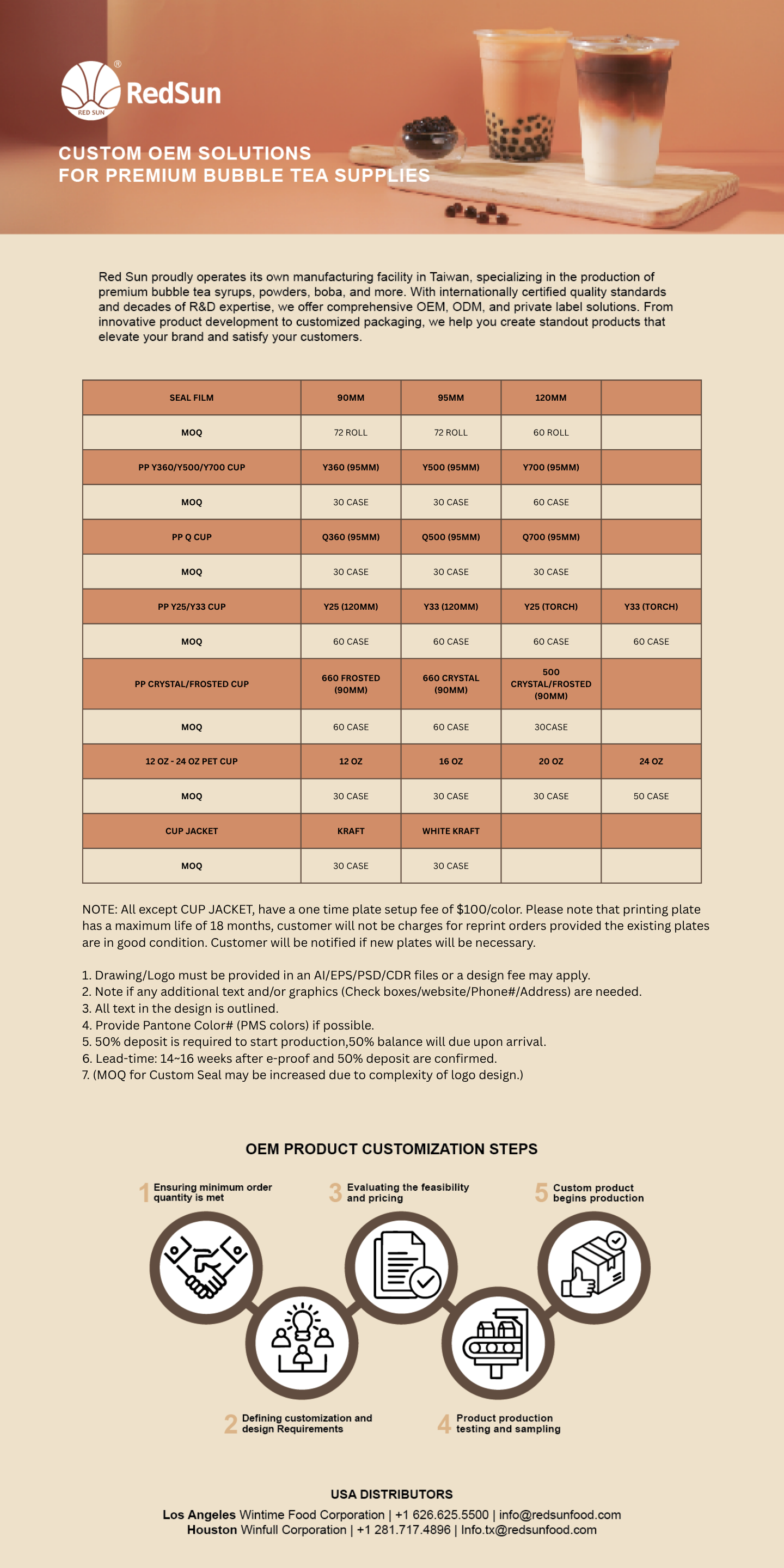 At Red Sun Food, we understand the importance of creating a unique and professional brand image. That’s why we offer OEM custom printing services for your boba tea packaging needs. Whether you're looking to customize your cups, bags, or other packaging, we’re here to help bring your brand’s vision to life with high-quality, custom-printed designs.